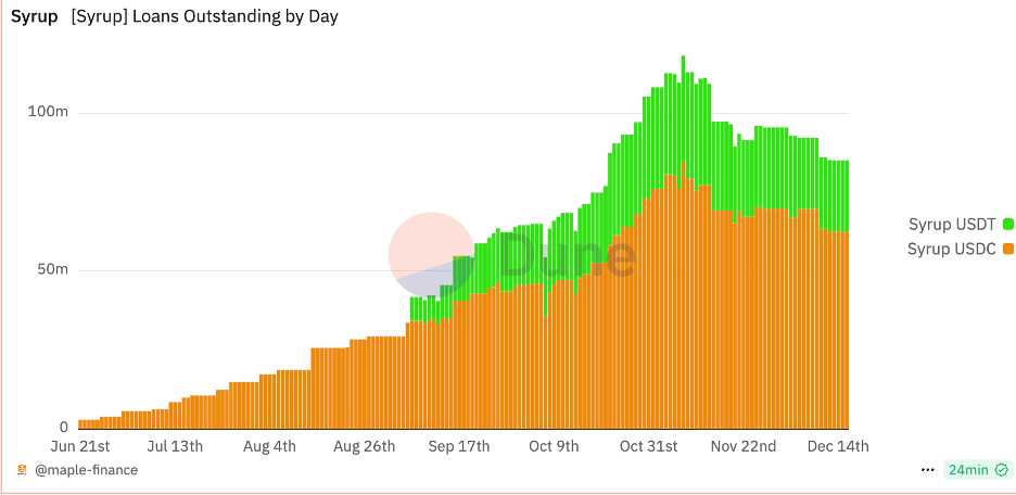 Maple 于今年 5 月推出的项目 Syrup 也依靠 DeFi 玩法实现快速增长,助力 Maple 在经历熊市贷款违约后重获新生。