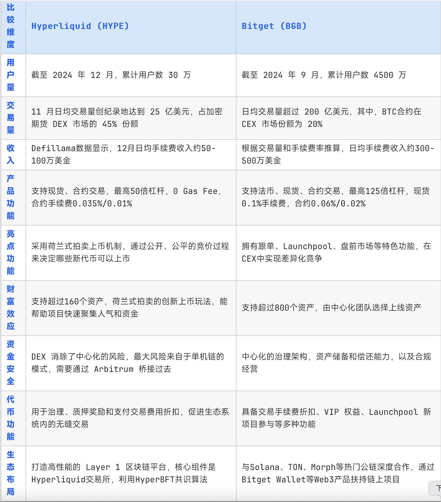 2024 年的 Hyperliquid 和 Bitget 成为 DEX 和 CEX 的双子星,Hyperliquid 的空投创造了不贫不富、富有预期的散户持币群体,他们会更主动参与市场流动性,Hyperliquid 独特的竞拍币模式,也吸引到更多项目首发 Hyperliquid。