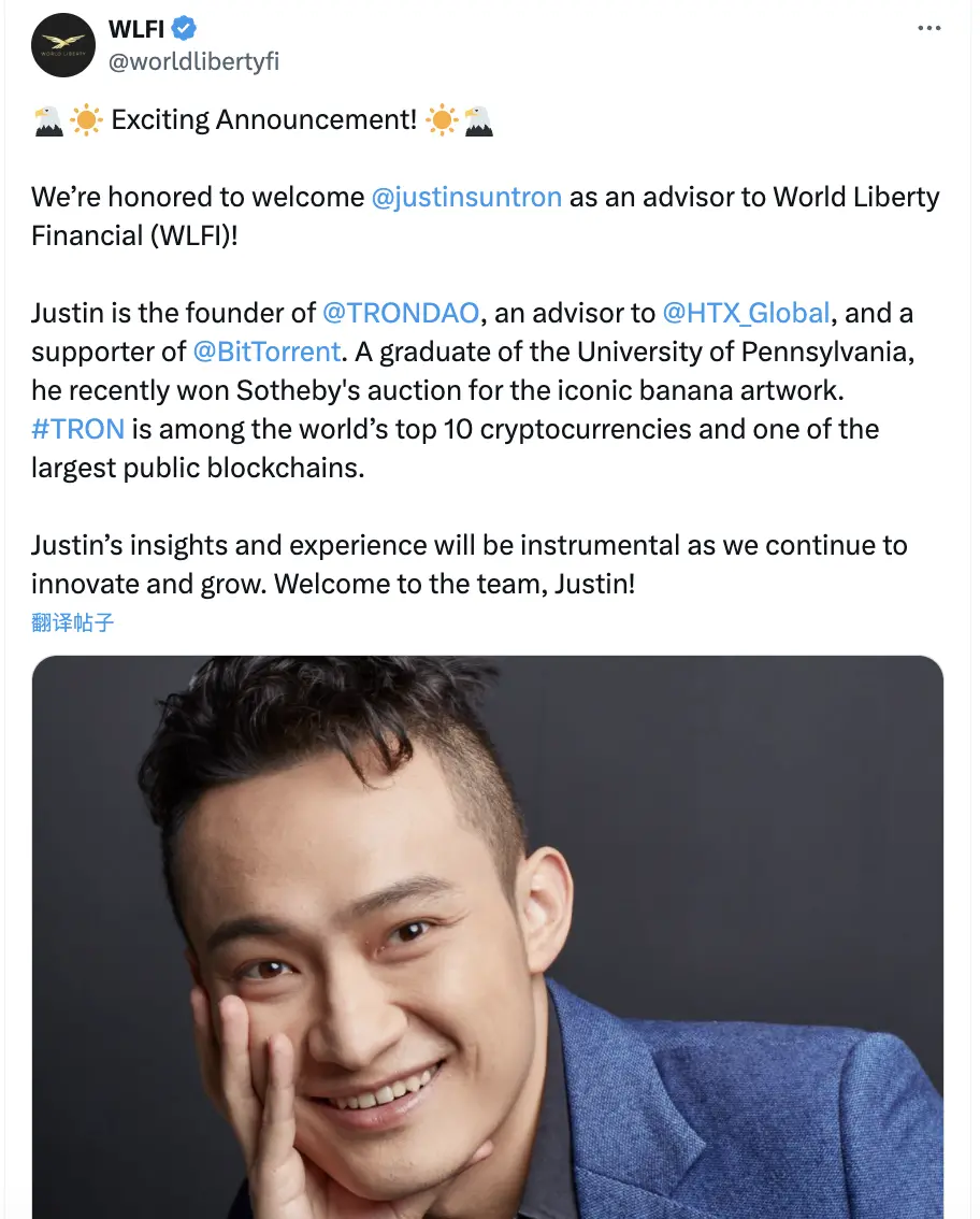 梳理孙宇晨近期和特朗普相关的动作来看,2024年11月24日,孙宇晨向 WLFI 投资了 3000万美元,并成为项目的投资顾问。
