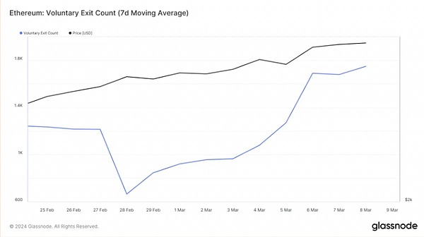此外,根据Glassnode的数据显示(如上图),从7天移动平均线观察,离开以太坊网络的验证者数量在过去两周增加了42%,这一趋势导致网络参与率短暂下降。根据 Glassnode 的数据,截至撰写本文时,PoS 网络的参与率处于两周低点99.46%,这些问题可能也需要开发者和整个社区来解决。