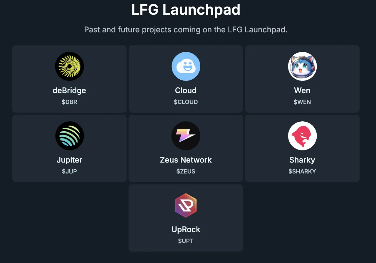Jupiter LFG 代币发射平台的往期项目