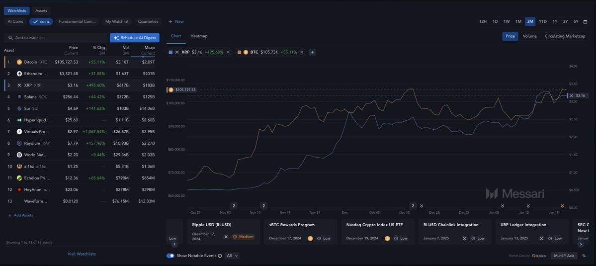 然而,这场突如其来的 Memecoin 热潮让市场充满了不确定性,留下了更多疑问而非答案。这是 Memecoin 的超级周期,还是顶部信号?我们是否应该重新关注 AI 代币?为什么 XRP 的价格图表表现如此强劲?包括市场自身在内,似乎没有人能够明确指出当前应该将资金集中投向哪个方向。