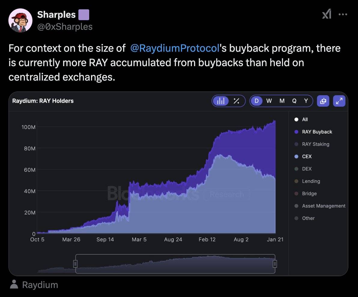 以 Raydium 为例,其代币目前似乎已经大部分解锁。