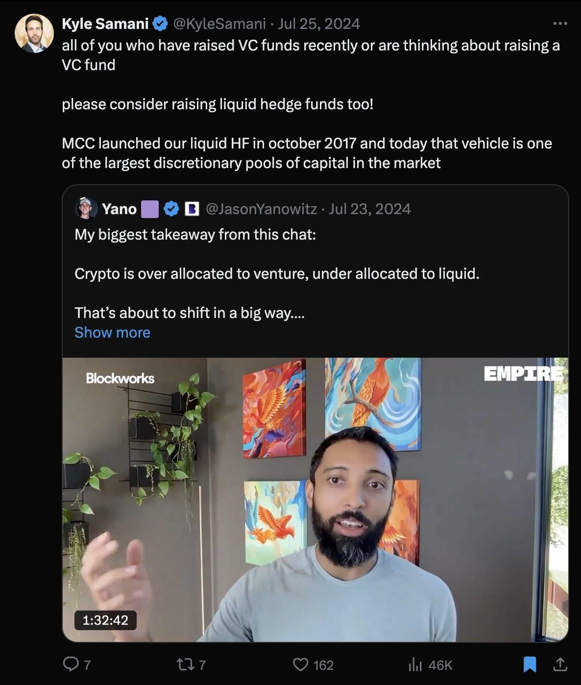 VCs 与流动资金以及市场之间的关系并非出于恶意,而是加密生态系统中资本流动的自然现象。VCs 需要依赖资金充足的流动资金来接盘他们的代币,而这些代币由于流动性不足,通常会以低价卖出。反过来,流动资金会试图通过 Twitter 等平台制造或放大市场叙事,吸引市场关注并提升交易量,以便在市场条件有利时高价抛售这些代币获利。