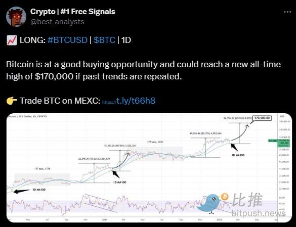 市场分析师 best_analysts 在其 X 平台最新发文中指出,若历史价格走势重演,比特币可能正处于更大规模突破的边缘。根据长期趋势分析,BTC 有望在未来几个月内攀升至 17 万美元左右,具体涨幅将取决于其能否维持当前趋势。