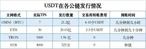 因此 Tether 又转向当年风头正盛的 Ethereum(仅次于比特币的第二大公链)。Ethereum 一定程度上解决了这个问题,但是更快的速度和更低的手续费是永久的追求,于是 Tether 开始在更多公链上尝试发行 USDT,以至于后来在加密行业内,大家都以 USDT 在某条公链开始发行资产作为这条公链受到行业主流认可的标志,毕竟,USDT 是真金白银,这么多资产铸造在某条公链之上,证明 Tether 这家行业巨头认可了这条公链的安全性和易用性。而且 USDT 带来的真实链上用户和手续费收入也是各家公链求之不得的,而当年的 Tron 和 EOS 都看到了这一点。