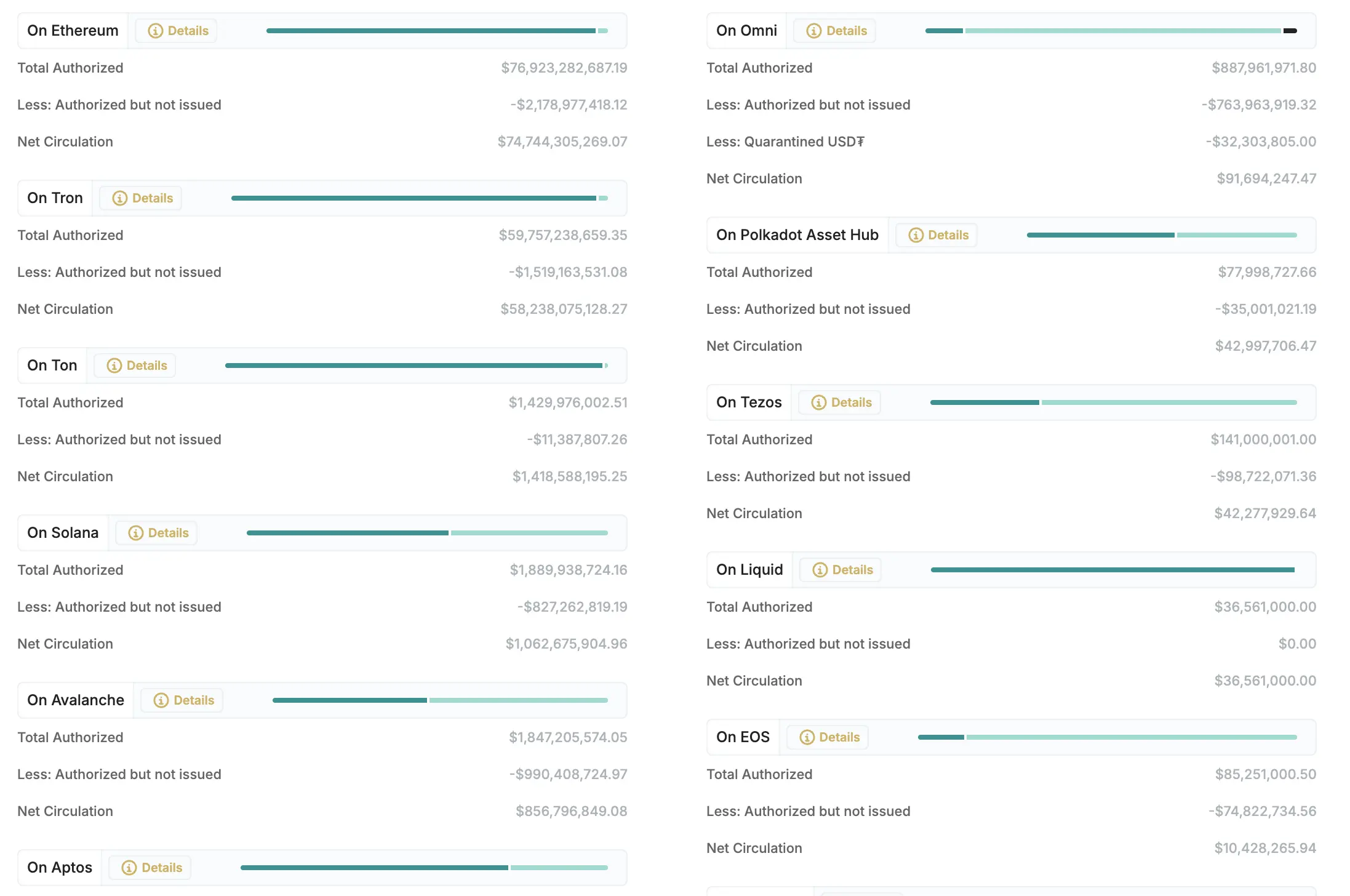 于是就这样,让子弹飞了一会儿,EOS 错过了斩杀波场(TRON)的最佳机会,如今在 Tether 官网的数据显示,截止撰稿时,发行在 EOS 链上的 USDT 为 8525 万枚,而这个数字在波场(TRON)上是 597 亿。
