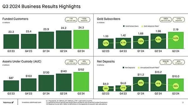 此外,平台连续第三个季度实现超 100 亿美元净存款的成绩,凸显了用户对 Robinhood 的高度信任。这种信任不仅支持着传统业务的发展,更为加密货币等创新业务的扩张提供了坚实基础。