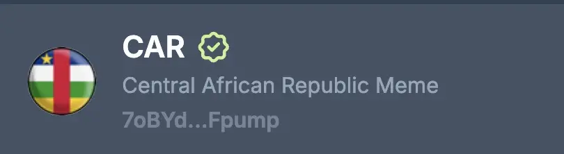 2025 年 2 月 10 日凌晨,中非共和国总统 Faustin-Archange Touadéra 通过其官方 X 账号发布了一段视频,宣布推出国家支持的 Meme 币 CAR,并公布了合约地址。声明称,CAR 是一项「促进国家发展、团结人民并提升国际影响力的实验」,总统还强调其作为全球第二位将比特币列为法定货币的领导人,对加密货币的潜力长期看好。