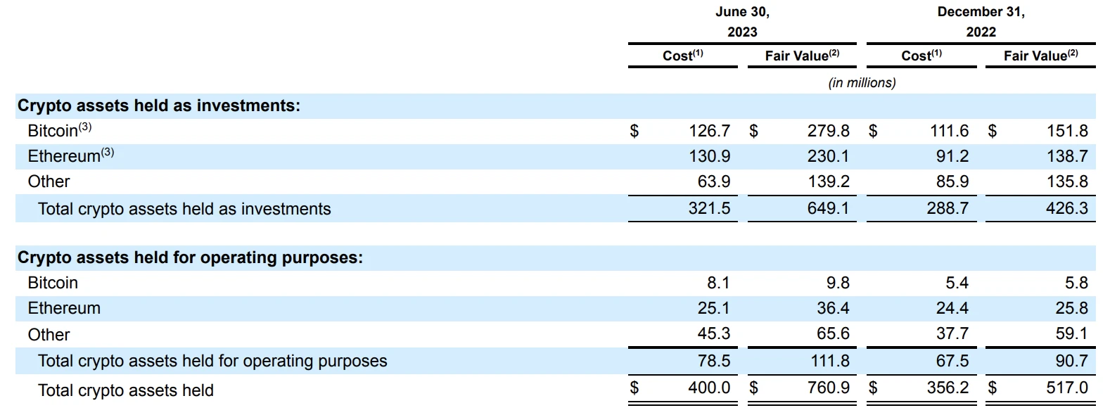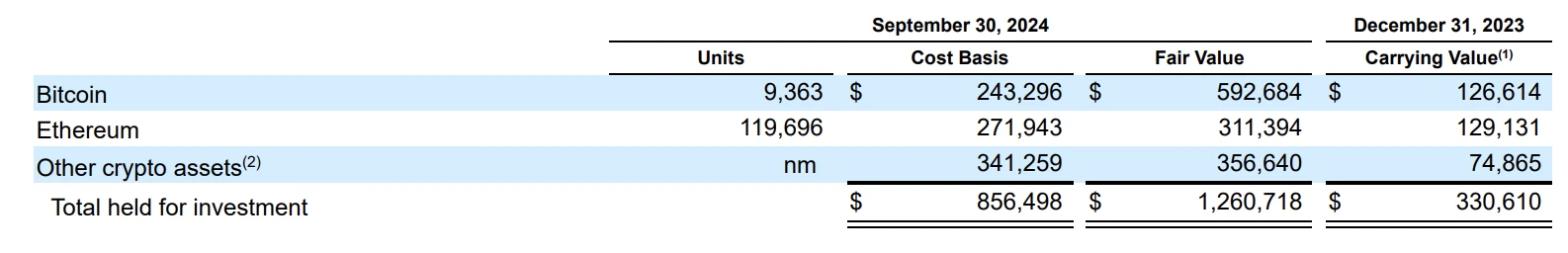 根据 Coinbase 的公开财报数据,截至 2023 年 6 月 30 日(参见 2023 年 Q2 财报第 66 页),Coinbase 的资产负债表上持有约 2.3 亿美元的 ETH,当时 ETH 价格为 1934 美元,这意味着 Coinbase 持有 118924 ETH;截至 2024 年 9 月 30 日(参见 2024 年 Q3 财报第 22 页),Coinbase 的资产负债表上持有 119696 ETH。