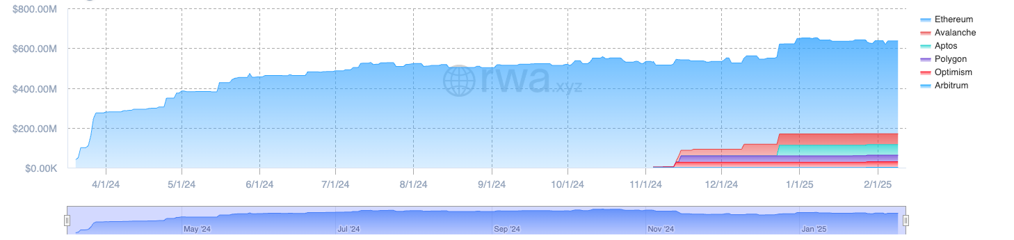 于是,当代币化概念风靡全球,链上流动性争夺战拉开序幕,贝莱德、高盛等资管巨头开始了更激进的选择:越来越多的代币化实践转向公链,以太坊成为机构代币化的首选。贝莱德率先行动,在以太坊推出了代币化基金 BUIDL:不仅能通过智能合约进行自动清算,还能在链上进行质押、借贷和二级交易。这标志着传统金融与 Web3 金融的首次深度结合,也让公链路径成为机构新的关注焦点。