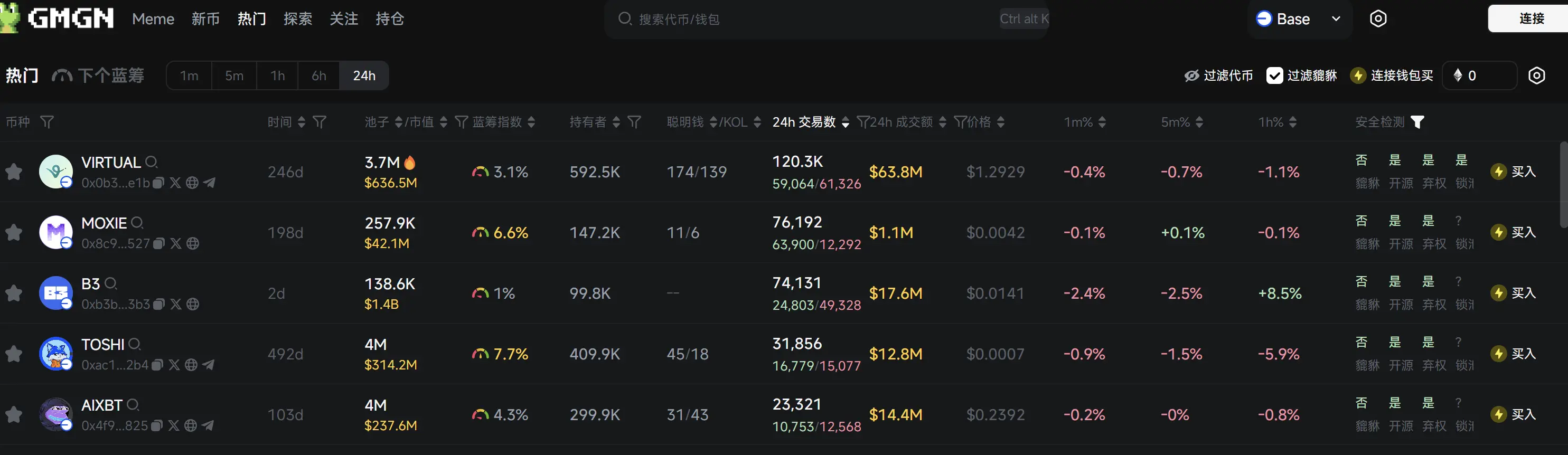 过去 24h Solana 热门代币前五依次为:YODA、PEAI、Prawn、Fullsend、FLIRTY