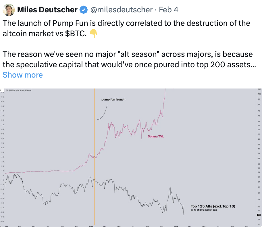 散户投资者直接涌向了链上的高风险投机项目,也就是所谓的「链上赌场游戏」(Pump Fun)。