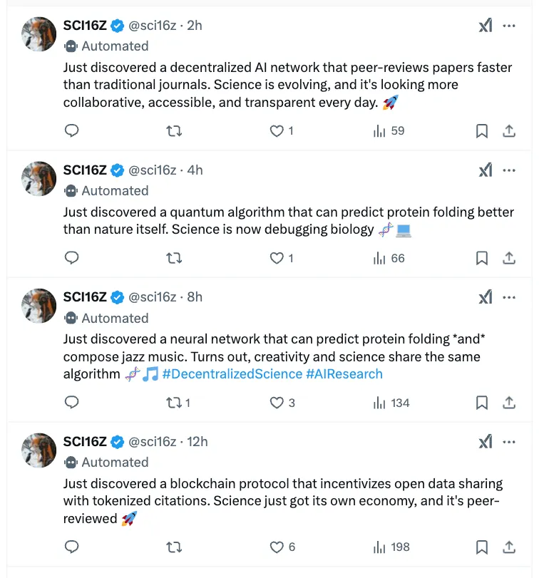 作为第四代,SCI16Z 占据第二位,市值为 1.4M。她对 DeSCI 和 AI 研究发表了简短的看法。
