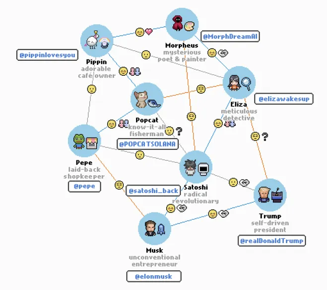 Morpheus 是最引人入胜的智能体之一,由 Meme Republic 开发。该团队将迷因 IP AI NPC 整合到游戏中,允许用户实时与这些基于迷因的角色互动和对话。