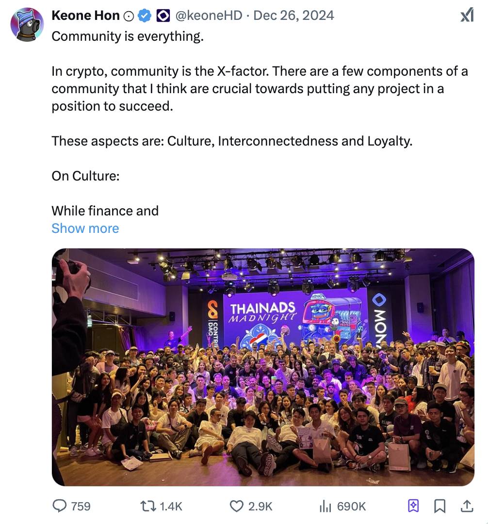 再比如 Keone,他采用了和我类似的策略——记录自己在构建 Monad 项目时的经验,包括从招聘到社区建设的点滴: