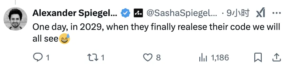 之后,Spiegelman 又在评论区调侃:「我想等到你们终于在 2029 年上线的时候,我们都会知道真相了。」;又碎碎念道:「Monad 正在复制我们的技术,如果他们能承认并给我们在研究和工程方面的辛勤工作以应有的认可,那或许是可以接受的。」