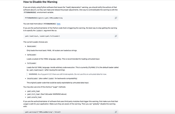 关键技术分析参考:https://github.com/yaml/pyyaml/wiki/PyYAML-yaml.load(input)-Deprecation#how-to-disable-the-warning