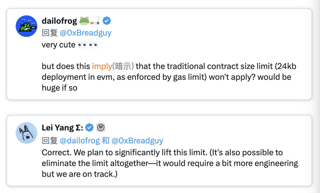 在最高层面上,这仅意味着「人们可以在链上做更复杂的事情」,这通常在合约和交易的严格大小限制中显现出来。