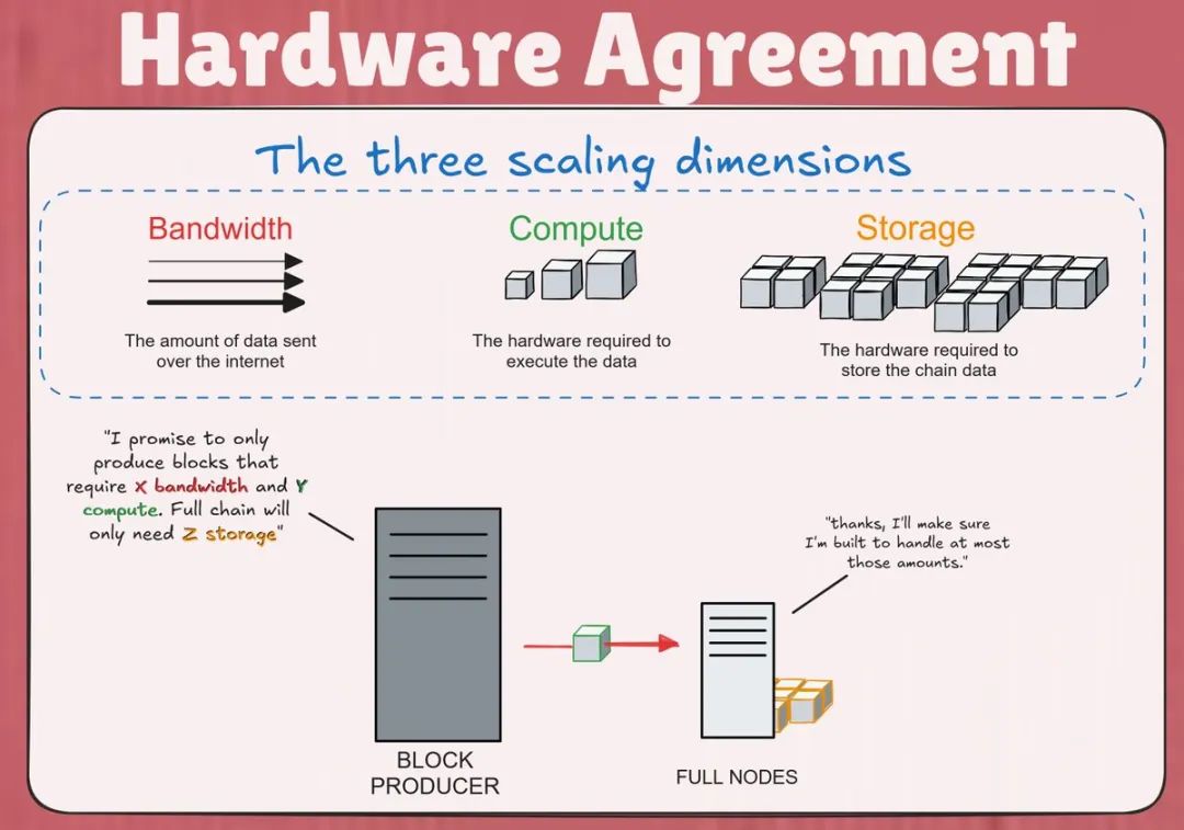 在加密货币的传统设置中,通常是让单个机器(完整节点)在孤立状态下运行,并能够处理所有三个维度的最大可能要求。