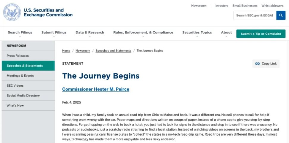 但随着特朗普上台,积极拥抱加密货币的大旗促使 SEC 开始放送扼住加密咽喉的监管流程,甚至在一定程度上达到了「真空」的地步。2 月 4 日,SEC 发布了加密货币工作组的工作计划,标志着美国在加密货币监管领域的一次重要转型。此工作组旨在为加密资产的监管框架带来更多的清晰度,同时保持对创新的支持。这样大的转变对于市场而言意味着什么?在春风吹起时,后续的加密合规化又将如何走向?