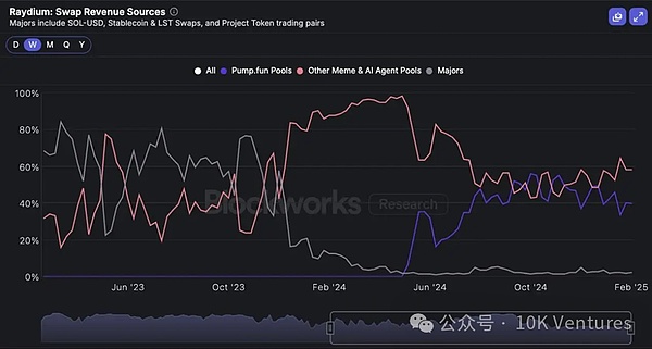 由于Pump.fun开始下场做dex,Raydium市占率可能将逐渐下降