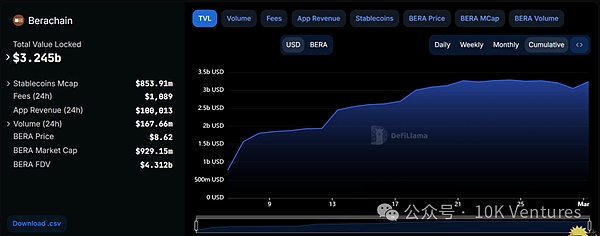 因此我们对Bera的价格不会太激进的预测,但对其POL给生态带来的快速增长表示乐观。