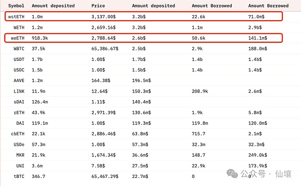 从这里可以看到 LST 和 LRT 两类资产占据了 AAVE 业务量不小的比例,尤其是从存款数据看的话,更是占了大头