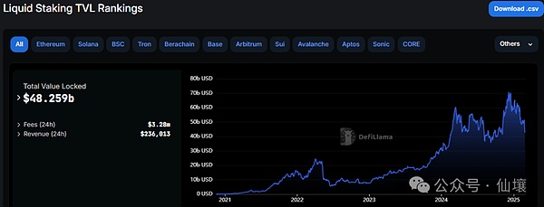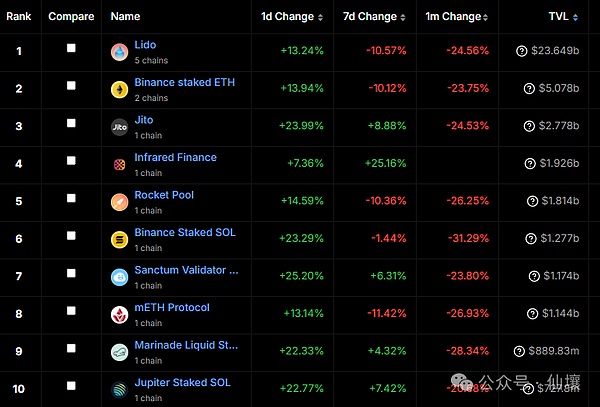 来源:https://defillama.com/protocols/Liquid%20Staking