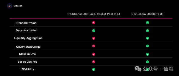 其次,Bifrost 还是一条针对 LST 的主权链,不用像传统的多链部署 LST 一样,是在各条链上部署自己的合约和流动性(避免了常规 LST 流动性割裂的问题),主权链本身也让 Bifrost 的功能扩张更加自由,尤其是 Substrate 架构本身在可组合性和扩展性上非常优秀,基于此架构的 Bifrost 可以实现其他 LST 发行商无法实现的功能。例如: