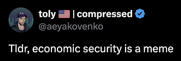 在Toly的语境中,meme更多指代“夸张的宣传口号”,他认为通过经济安全的效果实际上超过了当前需求。
