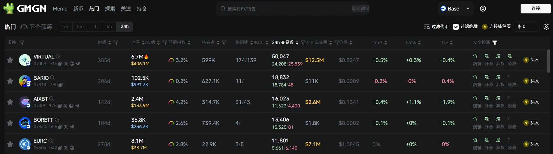 根据 Meme 代币追踪和分析平台 GMGN 行情数据显示,截止 3 月 24 日 19:50 :