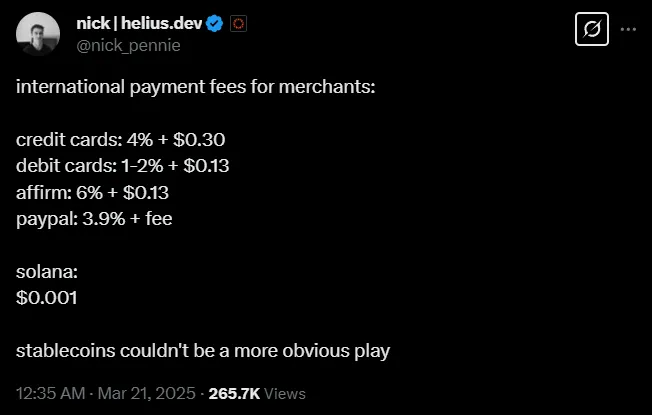 此外,稳定币在跨境支付领域的优势尤为显著。传统支付公司的国际转账费用居高不下,而使用稳定币支付时,这些费用几乎可以忽略不计。随着美国对稳定币友好立法的逐步落实,其普及率有望在未来几年迅速上升。