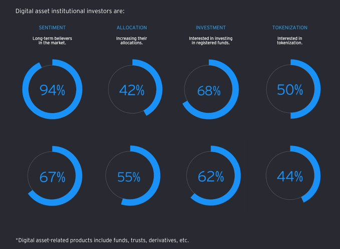 随着全球固定收益市场超过100 万亿美元,即使是机构向链上采用的微小转变也可能转化为数十亿美元的流入。2024 年安永-博智隆的一项调查发现,94% 的机构投资者相信数字资产的长期价值,超过一半的机构投资者增加了配置。