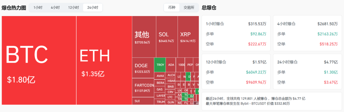而在如此波动的行情下,据 Coinglass 数据,过去 24 小时全网爆仓 4.77 亿美元,多单爆仓 1.3 亿美元,空单爆仓 3.47 亿美元。其中比特币爆仓 1.8 亿美元,以太坊爆仓 1.35 亿美元。在这样的市场环境下,Bitwise 首席投资官 Matt Hougan 表示,「比特币多头应该受到其表现的启发...一旦市场波动稳定下来,我们将看到它重返历史新高甚至更高。」