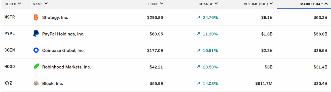 4 月 8 日,据《财富》杂志报道,美国司法部副部长 Todd Blanche 指示立即关闭司法部的加密诉讼部门(NCET),该部门于 2021 年成立,并处理了包括加密混币器 Tornado Cash 和 Mango Markets 漏洞事件等在内的几个具有里程碑意义的案件。Blanche 表示,上届政府以「鲁莽的策略」利用司法部,通过执法行动以过度监管加密行业。在同一天内,美国商品期货交易委员会(CFTC)代理主席 Caroline D. Pham 也赞同司法部政策,表示未来将不再针对数字资产的注册违规行为提起诉讼,并发起一项旨在迅速解决不合规问题积压的计划。这些合规进展叠加特朗普的关税政策利好,推动加密股在 4 月 9 日回升。其中 MSTR 回升至近 300 美元位置,收盘报 296.86 美元,单日涨幅 24.76%。
