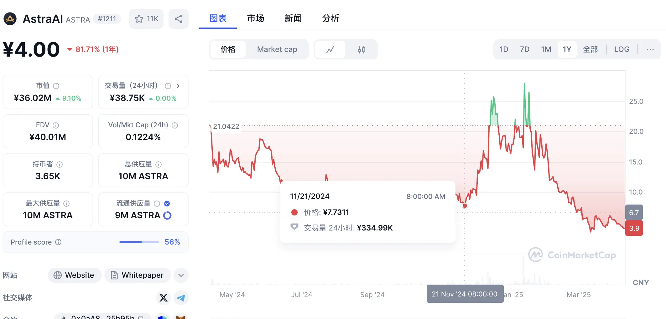 4、所投项目代币表现出「泵砸」模式 :Rollman 的被投项目中的代币价格都出现了在消息发布后价格快速上涨,而又下降的趋势。例如,2024 年 11 月 21 日,Rollman 投资 AstraAI 的新闻发布,其代币价格从 7.7 美元最高上涨至 25 美元,目前其代币价格为 4 美元。