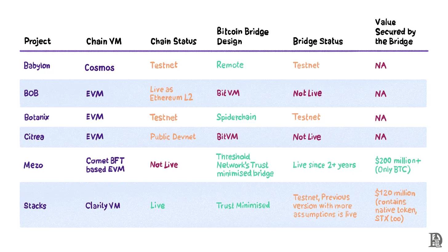 多个团队正在构建比特币的层,以利用 BTC 的巨大流动性。本文研究了六个不同的团队,这些团队在做出不同的权衡并有有趣的设计。我们简要描述了它们的工作方式、开发阶段及其迄今为止的进展。