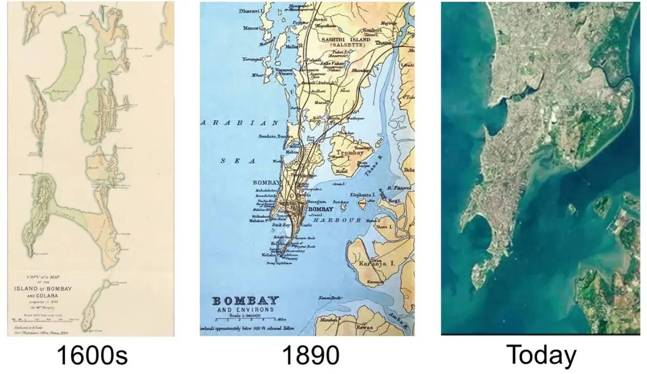 孟买七岛屿的演变。来源 – Reddit