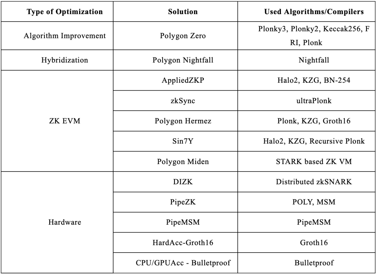 由此,诸多基于 ZKP 的网络项目相继涌现,如 ZkSync、StarkNet、Mina、Filecoin 和 Aleo 等。随着这些项目的发展,关于 ZKP 的算法创新层出不穷,据报道几乎每周都有新算法问世(Lavery, 2024 ;AdaPulse, 2024)。此外,与 ZKP 技术相关的硬件开发也在迅速进展,包括专为 ZKP 优化的芯片。例如,Ingonyama、Irreducible 和 Cysic 等项目已经完成了大规模的资金募集,这些发展不仅展示了 ZKP 技术的快速进步,也反映了从通用硬件向专用硬件如 GPU、FPGA 和 ASIC 的转变(Ingonyama, 2023 ;Burger, 2022)。
