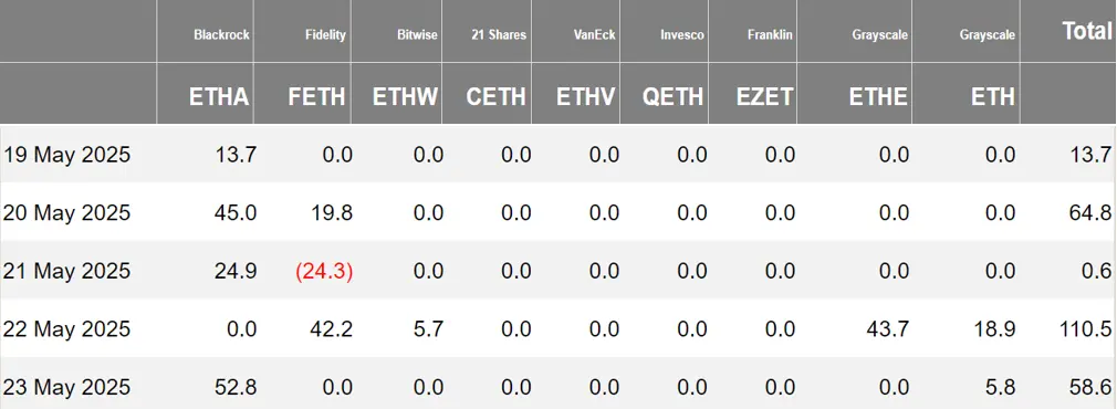 上周,美国以太坊现货 ETF 连续五日净流入,总净流入 2,48 亿美元,总资产净值达 91.2 亿美元。