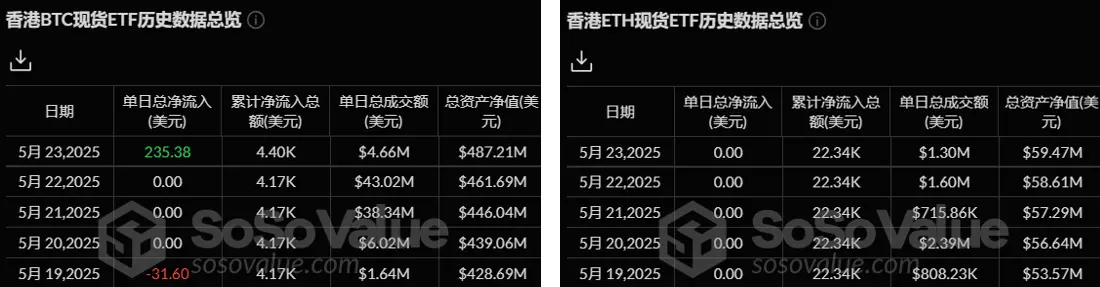 香港以太坊现货 ETF 无资金流入 ,资产净值为 5947 万美元。