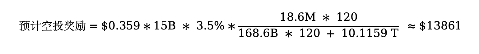 4. 结合当前ENA价格$0.359,并预估赛季结束后ENA总奖励为3.5%。做如下计算: