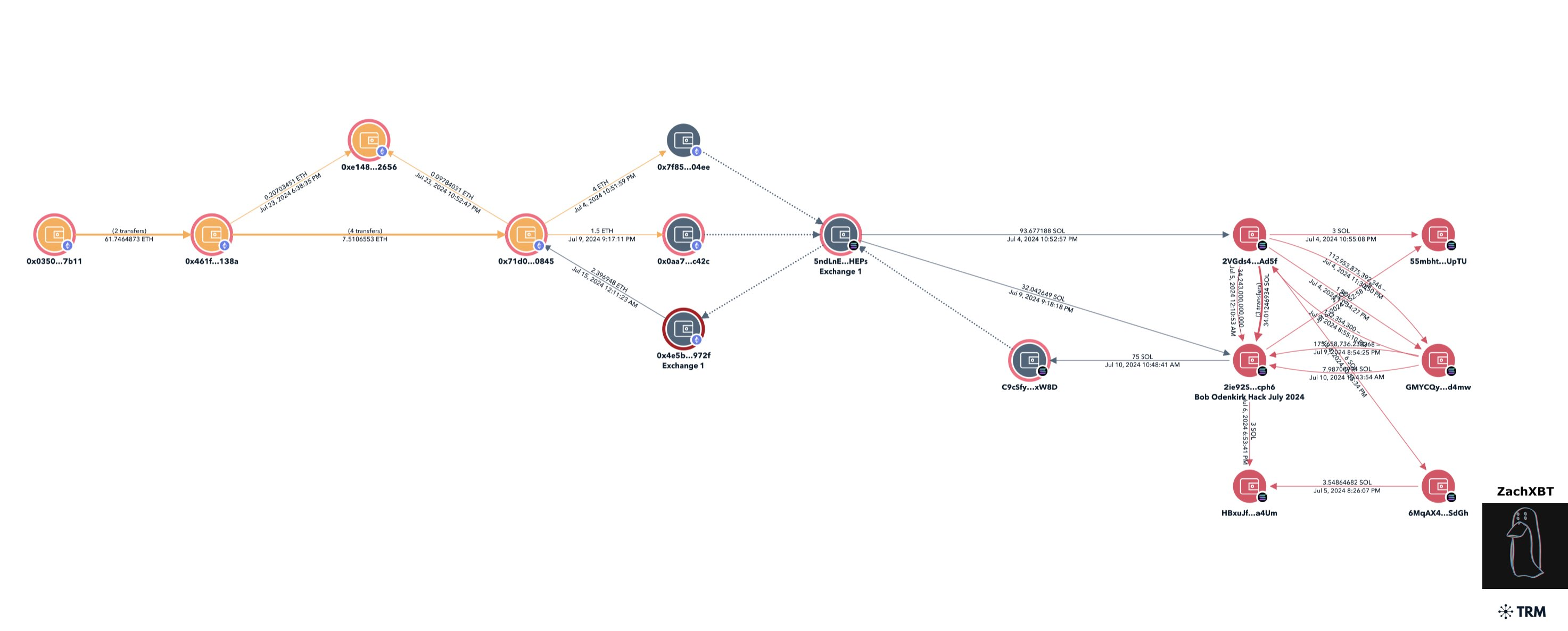 通过关联 Sydney Sweeney SIM 卡交换事件中的以太坊地址,我们发现 7 月 9 日有 1.5 ETH 被发送到一个交易所并在 Solana 上接收。根据这些信息,我们可以找到 Gurv 或其合作伙伴进行的另一次攻击。