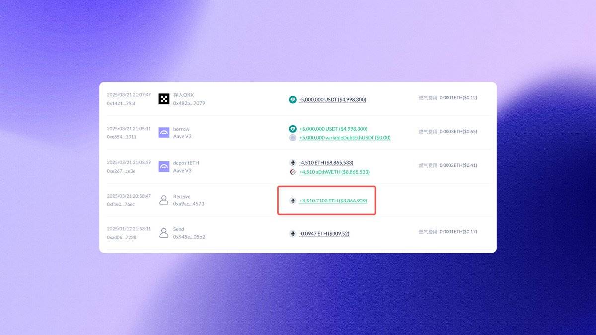 3月21晚上9点03:从 Binance 提取 4510 个 ETH,存入 Aave