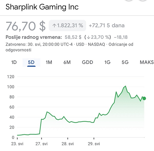 SharpLink 原本是一家在纳斯达克艰难求生的小型博彩公司,在市场的洪流中苦苦挣扎,一度濒临退市边缘。其股价曾低至令人咋舌的 1 美元以下,股东权益也严重不足,仅有不到 250 万美元,合规压力如同一座大山,压得公司喘不过气来。然而,就是这样一家看似前途黯淡的公司,却拥有一个令币圈巨头垂涎三尺的宝贵资源 —— 纳斯达克的上市身份,这个 “壳” 成为了它命运转折的关键。