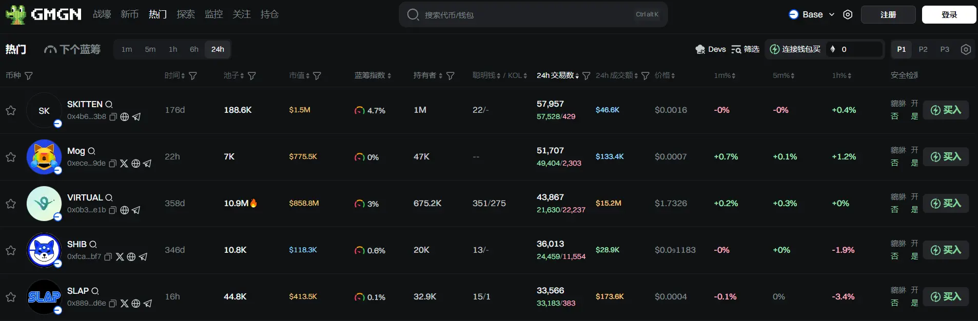 过去 24h 以太坊热门代币前五依次为:ZEUS、ZEUS、MIND、KBBB、GASS