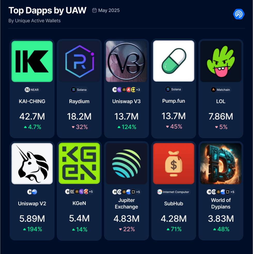 5 月份热门 DApp 的表现反映了一个更广泛的趋势:虽然投机性炒作可以快速推动用户激增,但长期留存越来越依赖于实用性和平台创新。无论是基于 AI 的通信、底层游戏互动,还是基于 L2 的 DeFi 扩展,如今排名上升的 DApp 不仅为用户提供投机性,还提供了易用性和功能性。