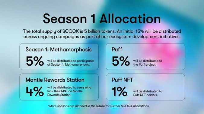Mantle LSP 治理代币 COOK 的 5%,也就是 2.5 亿 COOK 空投给 PUFF 持有者。