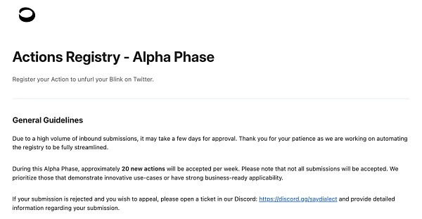 目前,为避免此类问题,Solana官方限制了Blink的创建和使用。如果项目想要发布Blink,需要通过https://dial.to/register填写申请表格。申请注册通过后,项目才能创建Blink链接。